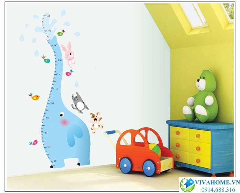 Decal dán tường thước đo chiều cao Voi xanh nhỏ chính xác 100% giúp ba mẹ dễ dàng theo dõi sự phát triển chiều cao của bé iu, đồng thời những hình họa ngộ nghĩnh, tươi vui này sẽ giúp căn phòng trở nên siêu đáng yêu hơn bao giờ hết.