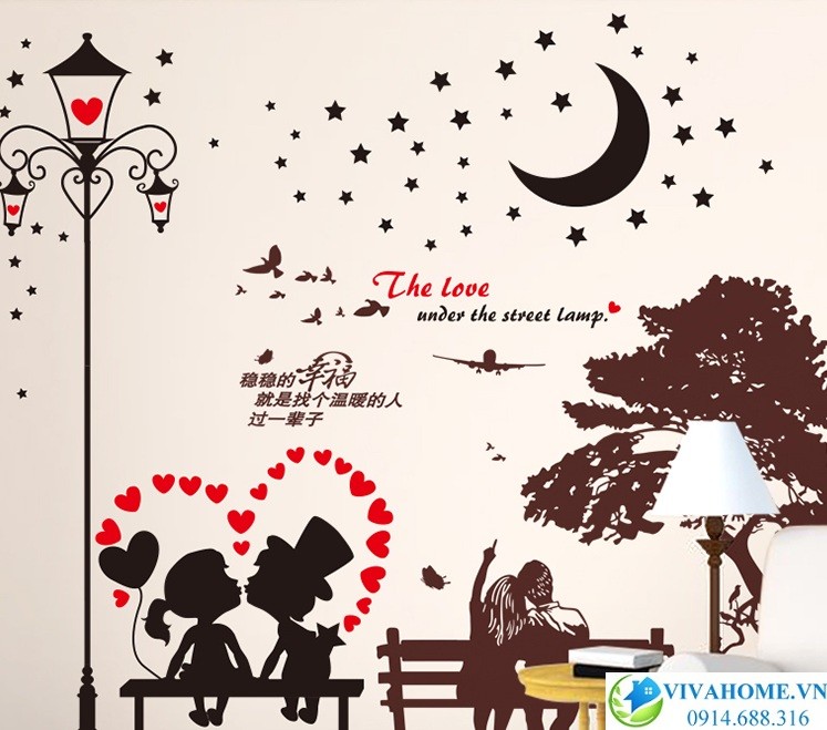 Decal dán tường Tình yêu dưới cột đèn ngọt ngào