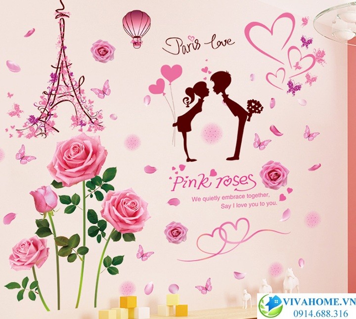 Decal dán tường Uyên ương hoa hồng phấn với những họa tiết xinh động, bắt mắt, màu sắc sắc nét mang lại vẻ độc đáo, cá tính riêng cho căn phòng của bạn. Sản phẩm rất thích hợp dán phòng ngủ, trang trí phòng cưới