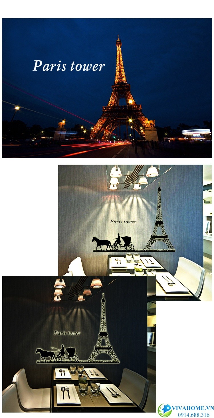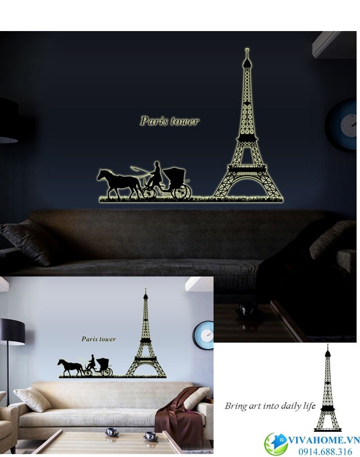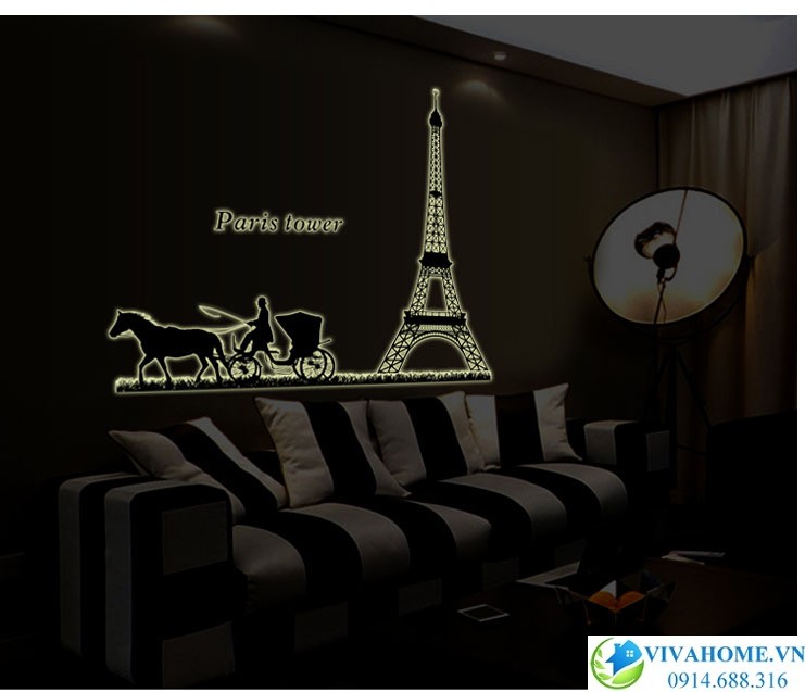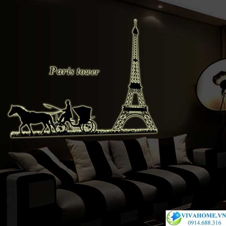 Decal dán tường Xe ngựa paris lấy cảm hứng từ vẻ đẹp của danh lam nổi tiếng thế giới, được thiết kế và sản xuất hết sức công phu, sáng tạo. Căn phòng trở nên sang trọng vào ban ngày với màu đen quý phái, và trở nên lung linh, huyền ảo vào ban đêm nhờ những họa tiết dạ quang phát sáng