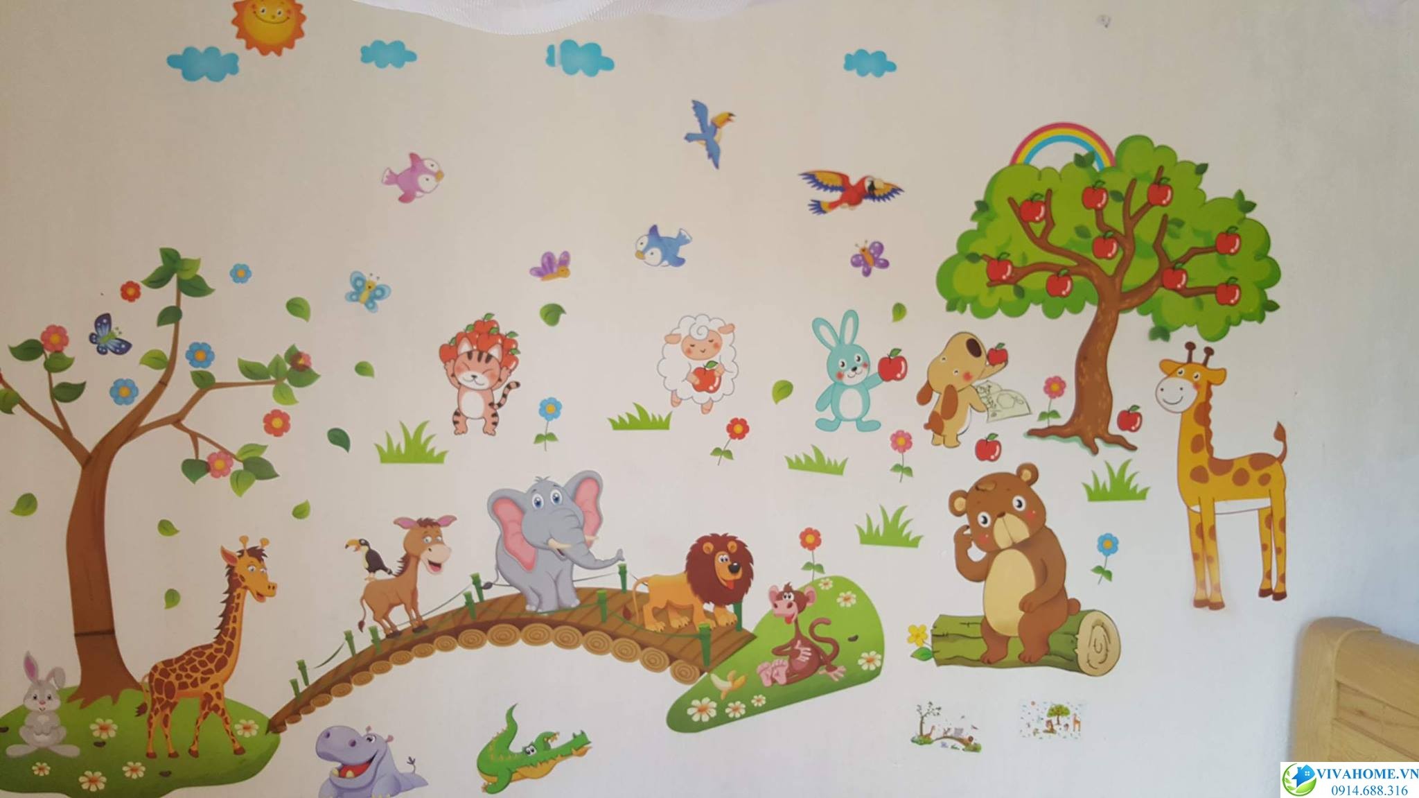 Ảnh thật nhà khách dán quá đẹp. Decal dán tường bộ thú qua cầu vườn cherry đang là sản phẩm hot nhất tại shop!!!